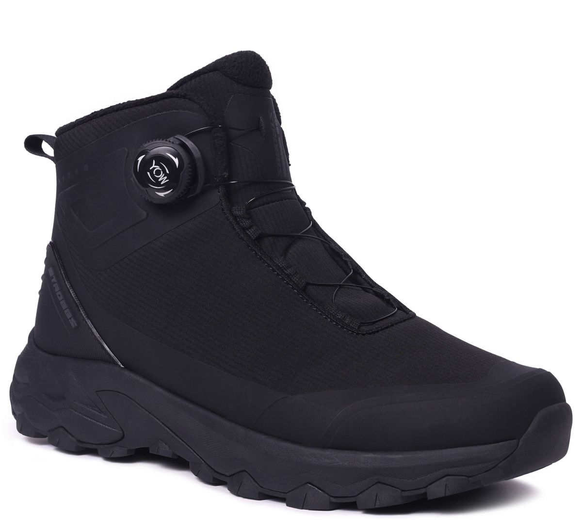 Системы быстрой шнуровки - позволяет легко и быстро надевать, и снимать обувь. Она обеспечивает надёжную фиксацию стопы и комфорт во время носки. Фиксация на ноге происходит с помощью высокотехнологичной системы, которая позволяет зафиксировать ногу простым вращением специального диска. Вместо обычных шнурков, затяжку производят тросики, скользящие по направляющим.