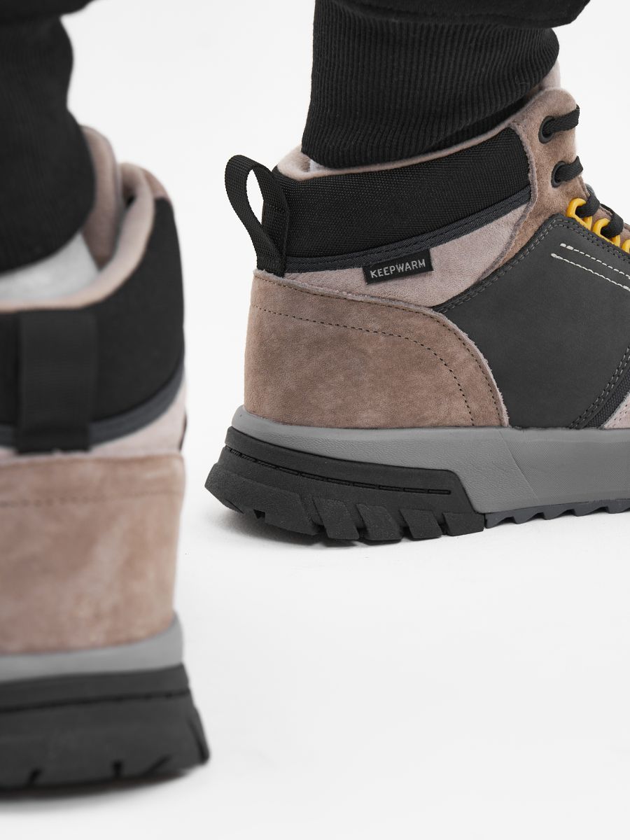 Модель предназначена для повседневной носки в сухую и морозную погоду. Верхняя часть выполнена из качественной натуральной кожи, натуральной замши и текстиля. Модель с утеплителем из натурального меха, а также шерстяной стелькой — это отличный выбор для холодного времени года. Такое сочетание материалов обеспечивает комфорт и тепло для ног.