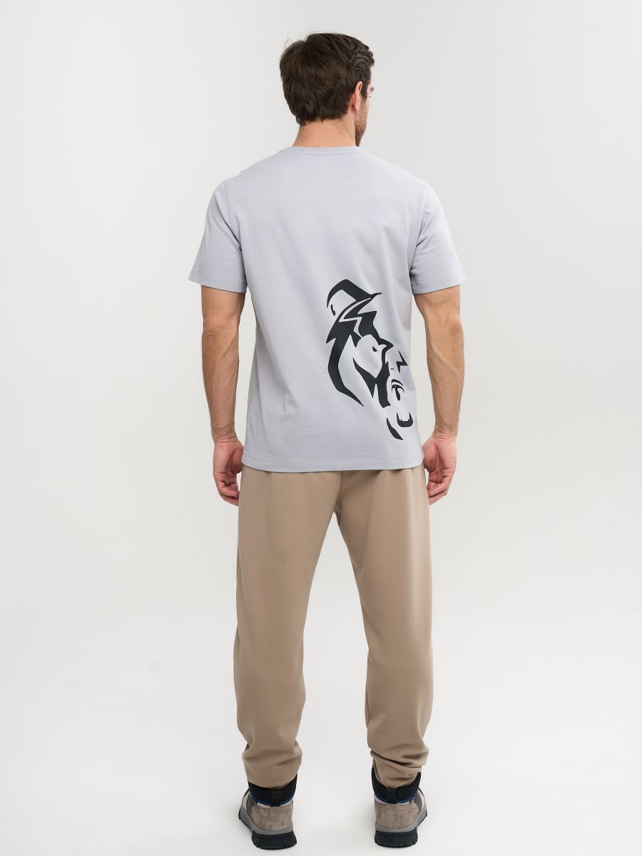 Футболка из материала на основе хлопка, что позволяет ткани дышать, отводить влагу от тела, а также хорошо сохраняет форму и не деформируется. В данной модели также используется технология 5А, которая обеспечивает ответственное производство без вреда для природы и безопасное использование для людей.