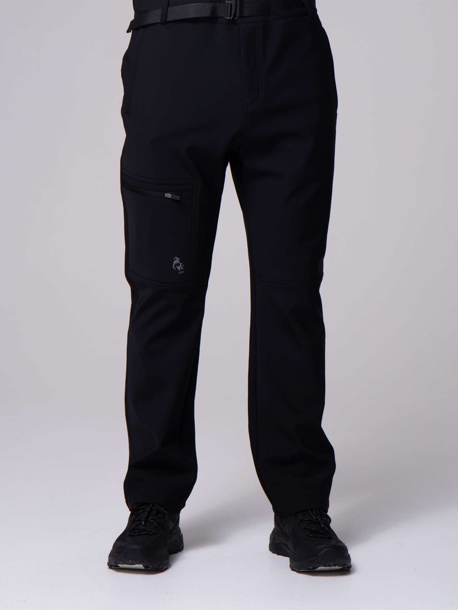 Брюки выполнены из эластичного смесового двойного материала на основе нейлона с добавлением спандекса на флисе. В модели используется высокотехнологичный материал A-king fleece tech Softshell — это ткани с многослойной конструкцией, внешне напоминающие нейлон, а с изнанки − флис.
