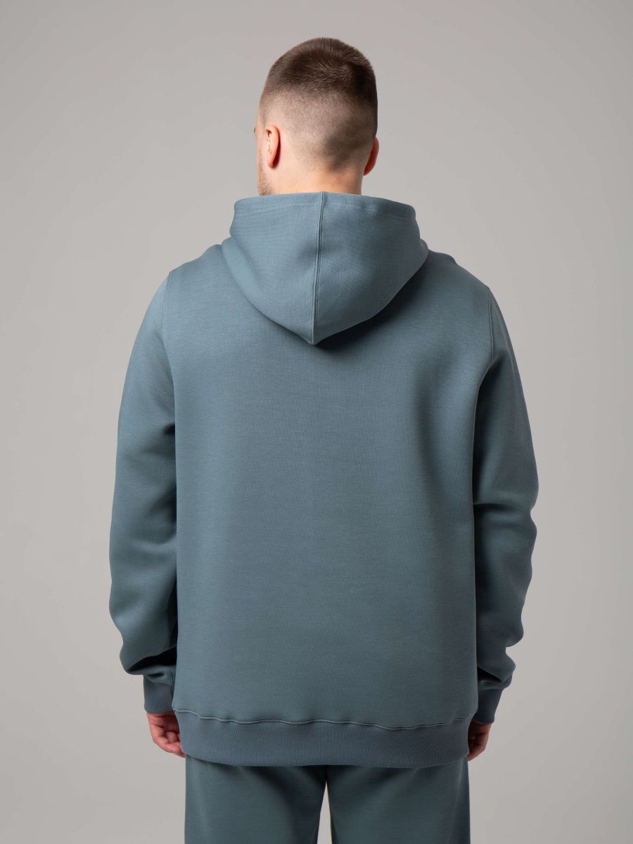 Стильное однотонное мужское худи с капюшоном и карманом-кенгуру из плотного двухстороннего трикотажа на основе хлопка и полиэстера, хорошо пропускающего воздух и впитывающего влагу. Применение технологии Sorona наделяет этот материал такими свойствами как лёгкость, эластичность, износостойкость и мягкость, всё что нужно для комфортного использования на каждый день. Способствует оптимальной терморегуляции, дышит и сохраняет тепло. Обладает антибактериальными свойствами, препятствует образованию неприятного запаха. Также используется технология 5А, которая обеспечивает ответственное производство без вреда для природы и безопасное использование для людей. Такой материал обеспечит комфорт в прохладную погоду. Худи идеально сочетает в себе удобство и модный молодежный стиль.. Классическая модель без принта с логотипом в тон основного материала универсальна для разных случаев — будь то спортивные занятия или прогулка по городу. Удобный карман-кенгуру позволяет хранить мелочи и греть руки.
