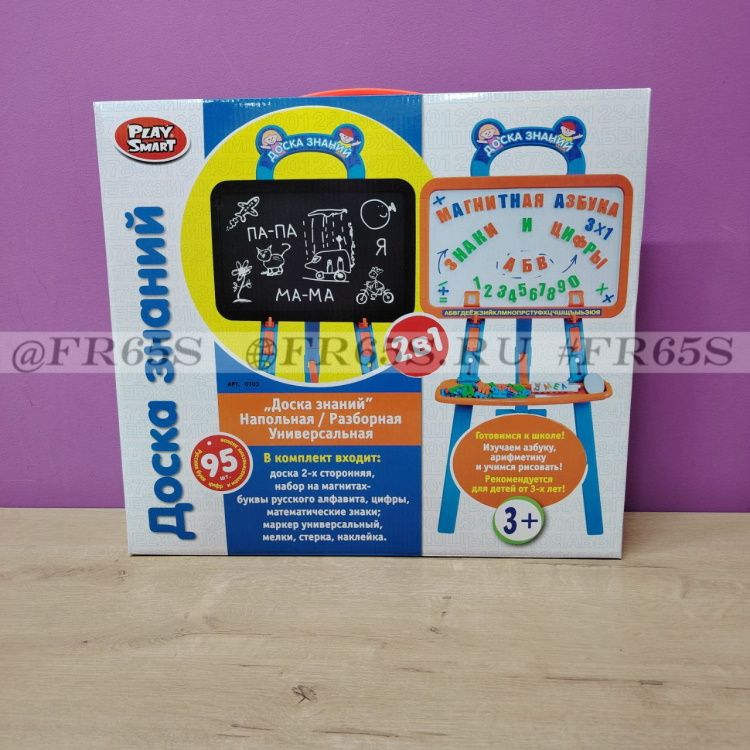 "Доска знаний" напольная, 2-х сторонняя, с вспомогательным набором на магнитах - буквы русского алфавита, цифры, математические знаки, маркер универсальный, мелки, стёрка, наклейка.